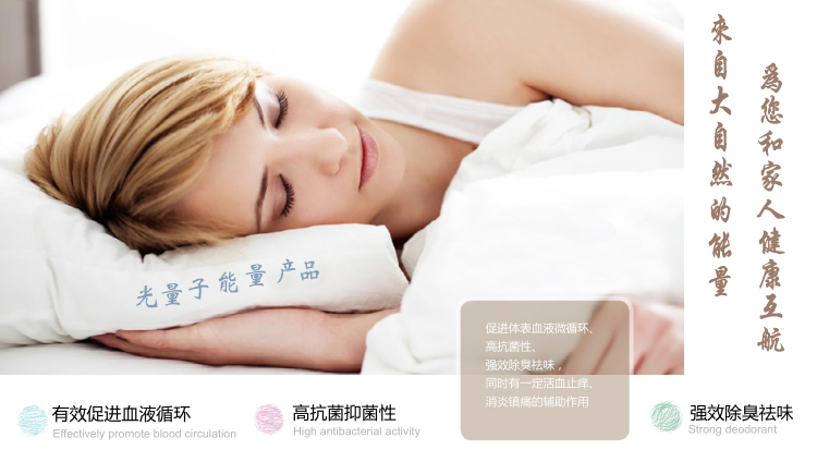 本产品采用“纳移纺光波能量技术”进行后期处理(与枕巾的生产厂家无关),它能持久释放健康光波能量,活化人体细胞,加快人体血液循环。