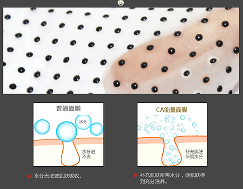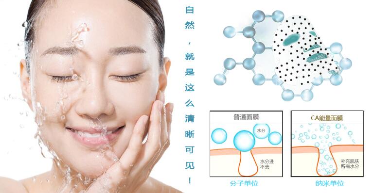本补水CA面膜采用纳移纺光波能量技术处理,在不改变面膜固有物质特性的情况下,添加进口高浓度纯植物精华,使面膜能释放对人体有益的健康能量。独特的生物磁粒立体面膜设计让肌肤导入精华更好的锁住水分、滋养肌肤底层。纳移纺光波能量面膜能细化水分子,使营养水更快速更完全的被皮肤吸收。